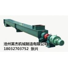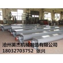 LS型水平螺旋輸送機是利用旋轉的螺旋將被輸送的物料沿固定的機殼內推移而進行輸送工作,頭部及尾部軸承移至殼體外,吊軸承采用滑動軸承設有防塵密封裝置,軸瓦一般采用粉末冶金,輸送水泥采用毛氈軸瓦,吊軸和螺旋軸采用滑塊連接。