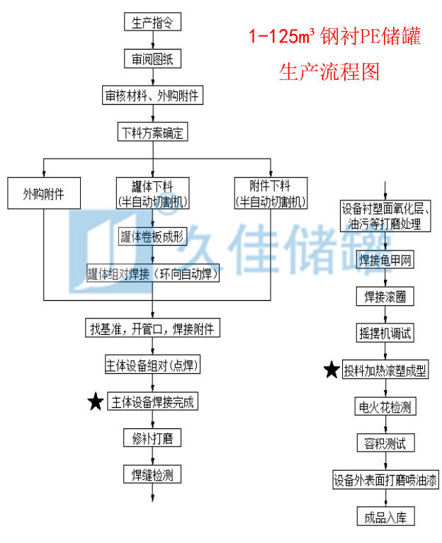 100立方鋼襯塑儲罐 久佳牌 三氯化鐵儲罐廠家生產(chǎn)工藝介紹