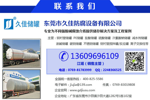 100立方鋼襯塑儲罐 久佳牌 三氯化鐵儲罐廠家特性:鋼襯塑儲罐由于其獨特的滾塑工藝、產(chǎn)品整體結(jié)構(gòu)和材料優(yōu)異性能,具有整體性好、強(qiáng)度高、無焊縫、不滲漏、抗沖擊、韌性好、重量輕、壽命長、耐酸堿、耐有機(jī)溶媒、符合衛(wèi)生標(biāo)準(zhǔn)、價格低廉、規(guī)格品種多等特點。尤其耐腐蝕、長壽命和大規(guī)格品種有非常大的優(yōu)勢,是貯存和運輸各類化工液體半固體的理想產(chǎn)品。其性能大大超過了傳統(tǒng)的玻璃鋼、陶瓷、橡膠、焊接塑料等材料制作的防腐儲罐。已成為傳統(tǒng)防腐儲罐的升級換代產(chǎn)品,逐漸成為防腐儲罐的首選產(chǎn)品。